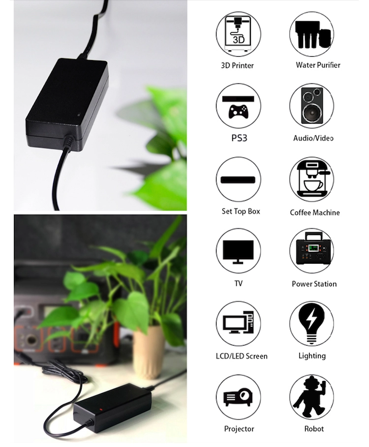 * Viac jednotiek pre 120W sériu: 12V/15V/20V/24V/36V/48V k dispozícii * Bezpečnosť: OCP/OVP/OTP, SCP, automatické odpojenie pri preťažení, odpojenie pri prepätí, automatické tepelné odpojenie. * Široká kompatibilita: LED pásové svetlá, 3D tlačiareň, rádioamatér, CCTV kamery, subwoofer do auta, audio zosilňovač, bezdrôtový router, ADSL Cats, zvlhčovač, HUB, klávesnica, BT reproduktor, monitor, webkamera, DVR, NVR, audio/video napájanie