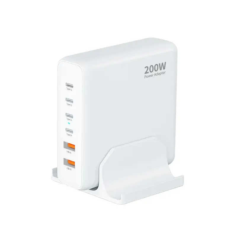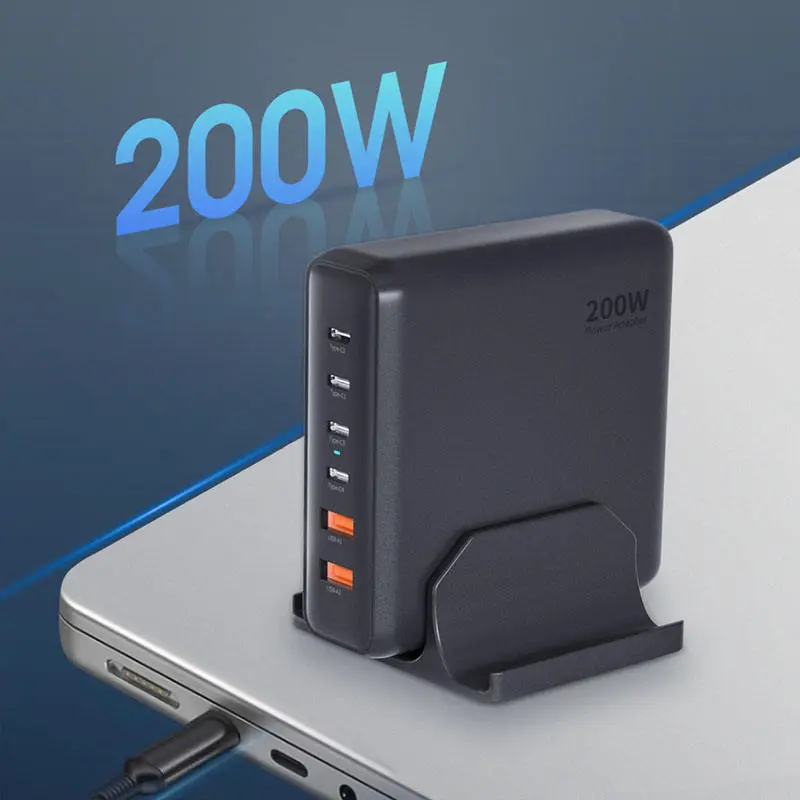 GAN 200W rýchla nabíjačka 4 USB-C + 2 USB-A 200W PD nabíjačka