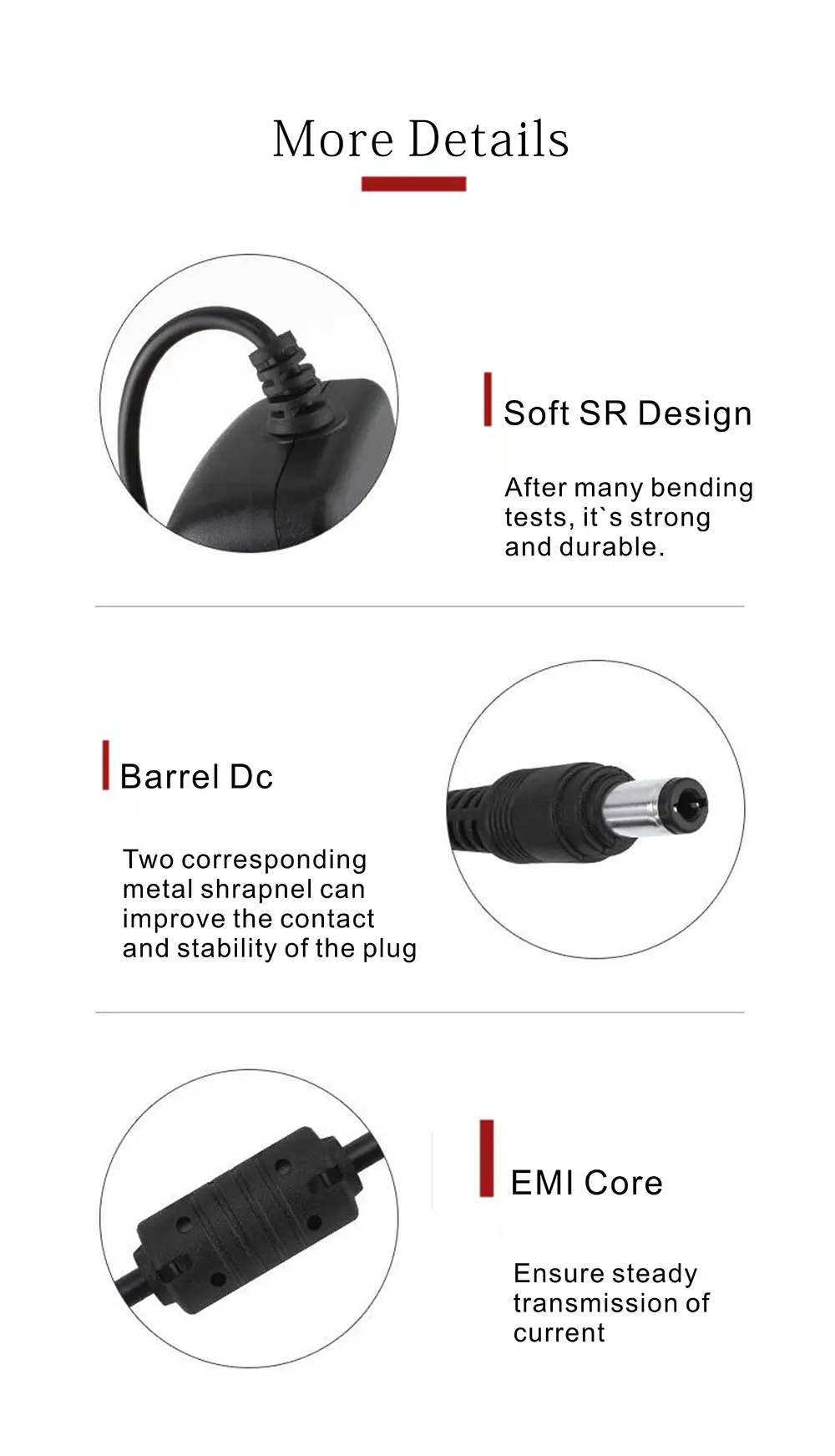 3. Prispôsobenie konektora: Uistite sa, že veľkosť zástrčky (napr. 5,5 mm x 2,1 mm) a polarita (často kladná v strede) sa zhodujú s DC konektorom vášho zariadenia. Nesúlad môže spôsobiť poškodenie.