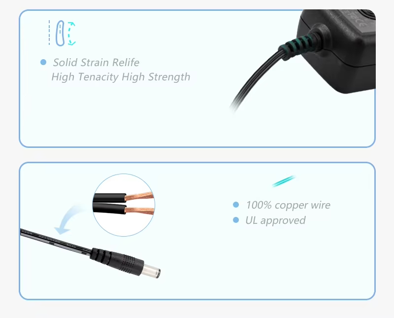 Efektívne a stabilné napájanie: Ako vysokovýkonný 24W napájací adaptér využíva pokročilú technológiu napájacieho zdroja s vymeniteľnou zástrčkou na dosiahnutie efektívnej konverzie. Dokáže stabilne premieňať striedavý prúd na jednosmerný prúd (napájací adaptér s vymeniteľnou zástrčkou AC/DC), čím poskytuje nepretržitú a čistú energiu pre vaše zariadenia.