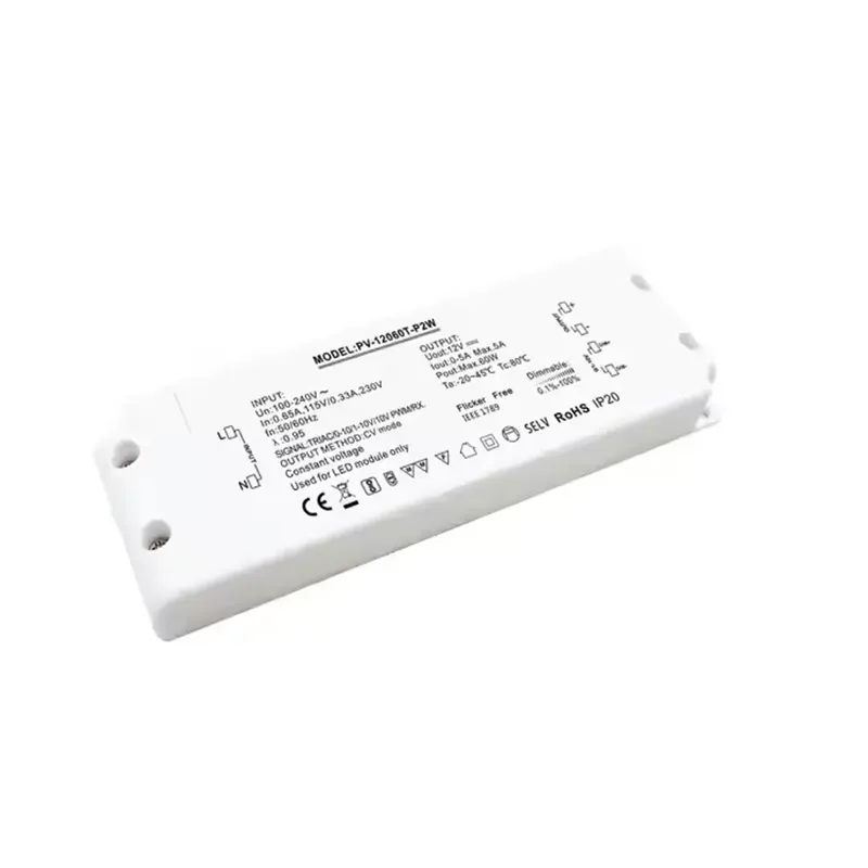 60W ultratenký triakový stmievateľný LED ovládač s konštantným napätím