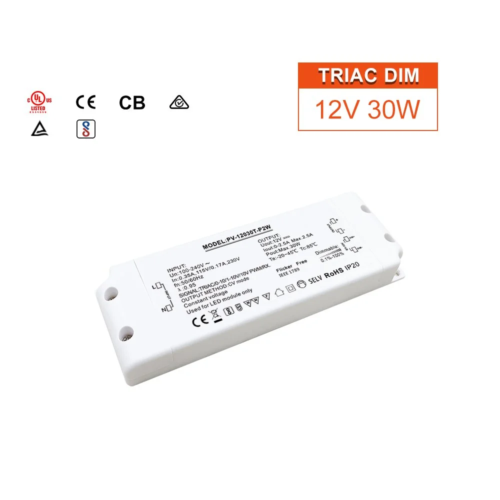 Profesionálne riešenie stmievania: 30W triak s konštantným napätím/0-10V dvojrežimový stmievateľný LED ovládač