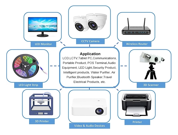 * Viac jednotiek pre sériu 48W: 5V/9V/12V/15V/19V/24V/36V/48V k dispozícii * Bezpečnosť: OCP/OVP/OTP, SCP, automatické odpojenie pri preťažení, odpojenie pri prepätí, automatické tepelné odpojenie. * Široká kompatibilita: LED pásové svetlá, 3D tlačiareň, rádioamatér, CCTV kamery, subwoofer do auta, audio zosilňovač, bezdrôtový router, ADSL Cats, zvlhčovač, HUB, klávesnica, BT reproduktor, monitor, webkamera, DVR, NVR, audio/video napájanie