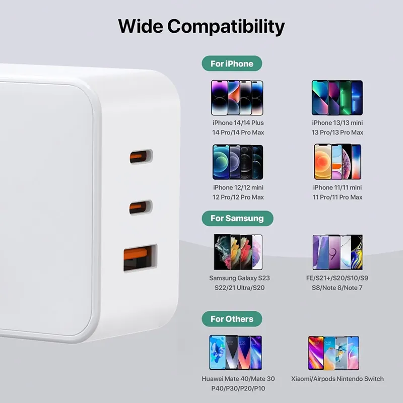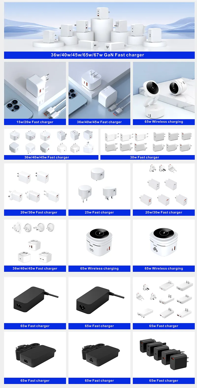 Táto nabíjačka poskytuje konzistentný výkon až 65 W a efektívne nabíja notebooky (napr. MacBook Air/Pro, Dell XPS), tablety, smartfóny (iPhone, Samsung Galaxy) a ďalšie zariadenia, ktoré podporujú protokol PD. Jeho kompaktný a ľahký dizajn ho predurčuje na cesty, zatiaľ čo vstavaná prepäťová, nadprúdová a skratová ochrana zaisťuje bezpečné nabíjanie nabíjačky a pripojených zariadení. Zvyčajne je vybavený 1-2 rozhraniami USB-C, ktoré podporujú nabíjanie viacerých malých zariadení súčasne, vyrovnáva výkon a pohodlie.
