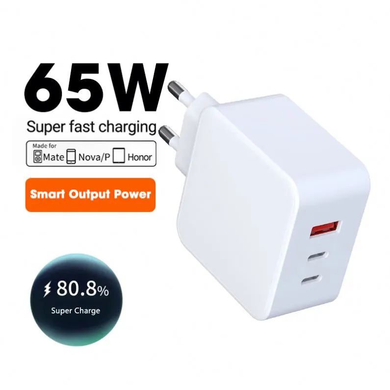 65 W PD 3.0 ultratenká 3 portová britská nabíjačka GaN rýchla nabíjačka OTP pre notebook 2A výstup