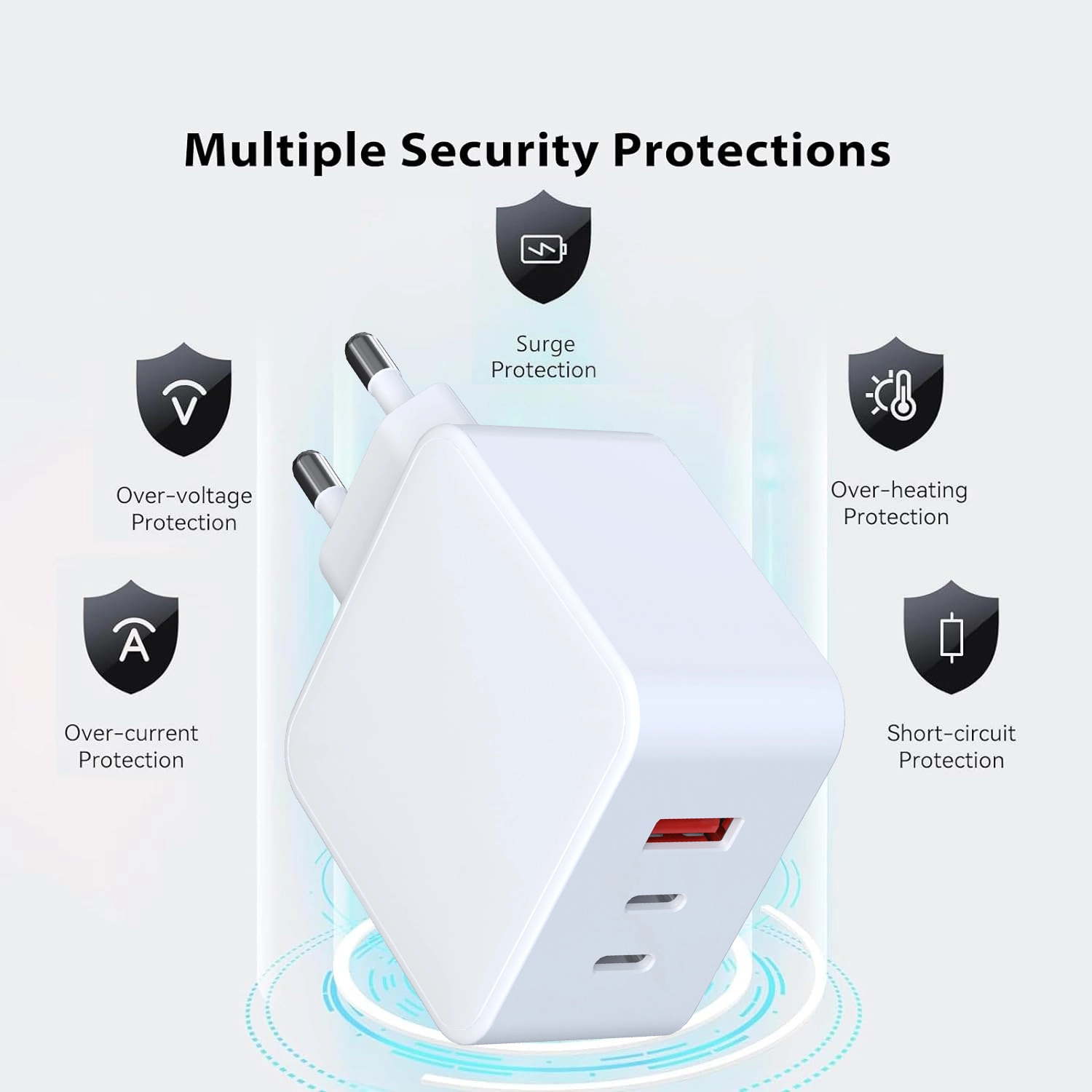 Inteligentné nabíjanie s viacerými portami - Vybavené dvoma portami USB-C a USB-A vám umožňuje nabíjať viacero zariadení súčasne bez ovplyvnenia rýchlosti.
