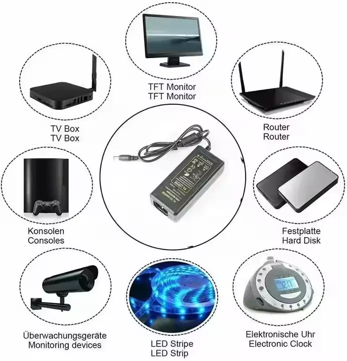 Tento adaptér je kompatibilný s rôznymi zariadeniami, ako sú stolné počítače, priemyselné riadiace systémy, lekárske zariadenia a vysokovýkonné periférne zariadenia, a ponúka všestranné a dôveryhodné riešenie napájania pre profesionálne aj osobné aplikácie.