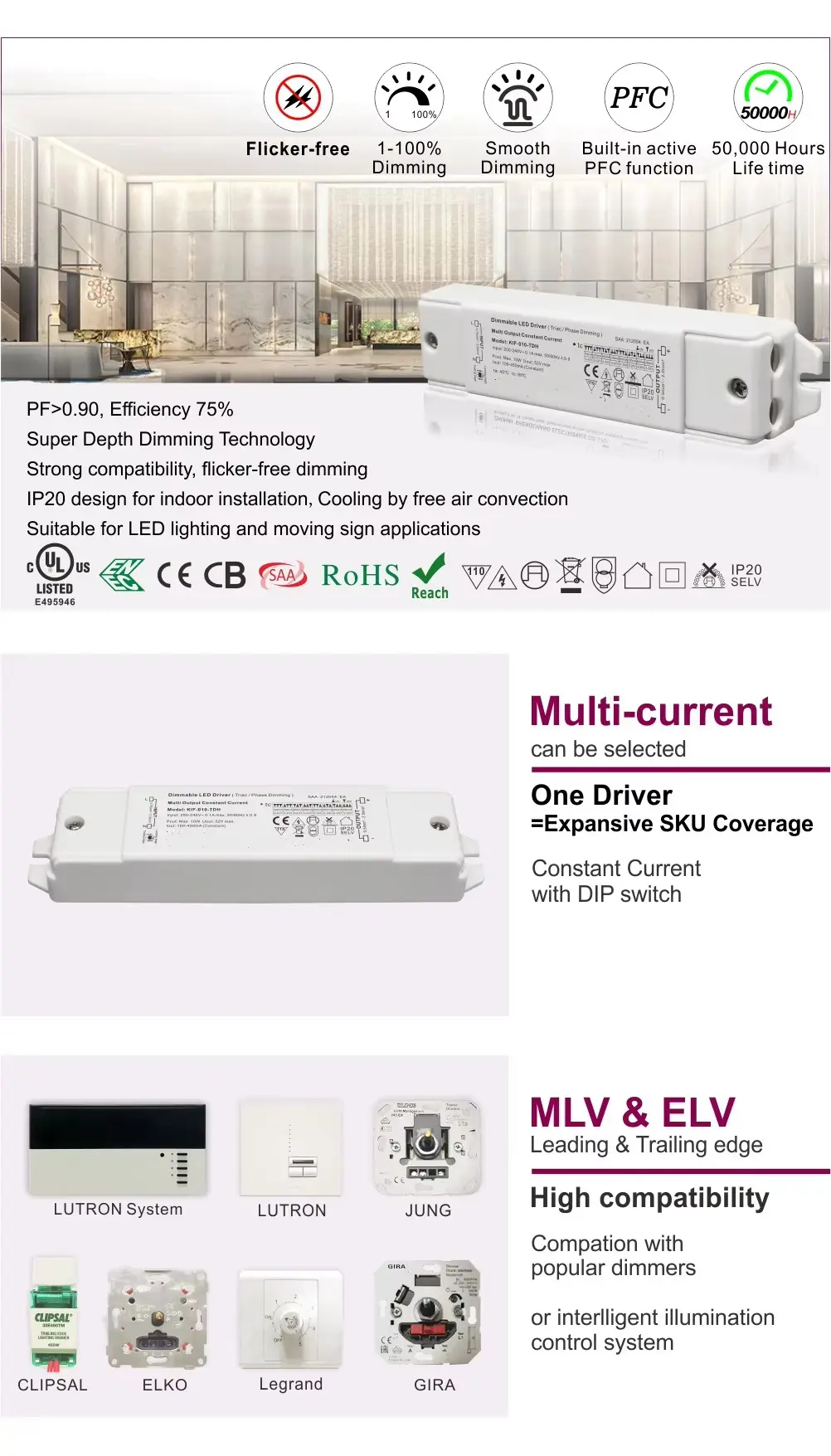 Robustný výkon a vysoká účinnosť: S vysokou korekciou účinníka (PF>0,9) a nízkym celkovým harmonickým skreslením (THD) spĺňa náš ovládač globálne požiadavky na energetickú účinnosť, znižuje zaťaženie vášho elektrického systému a pracuje s chladným a spoľahlivým výkonom.